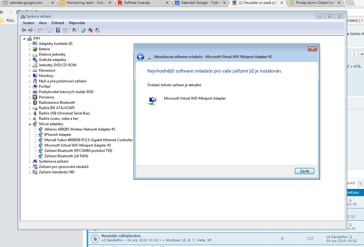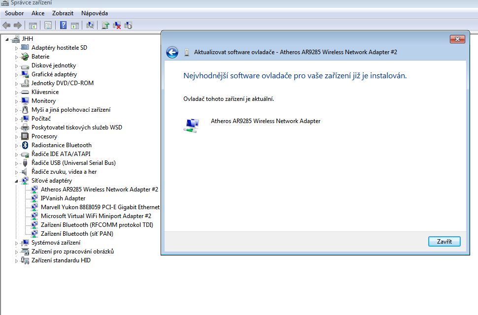 Wifi ovladač jsem zkoušela, píše to že je nainstalován když dám aktualizaci.