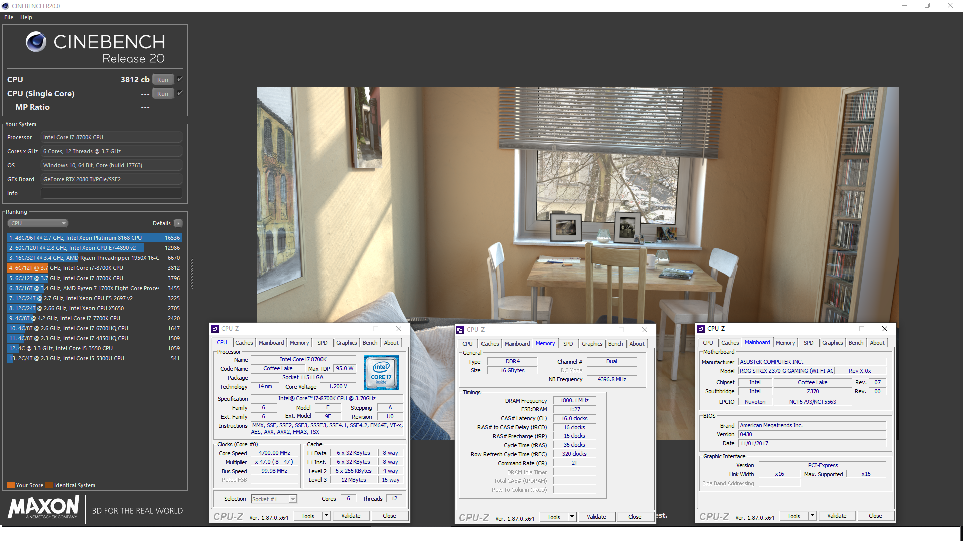 i7 8700k, RTX 2080, ASUS Z370, 3600MHz 16GB, 1GB 970 EVO Plus.