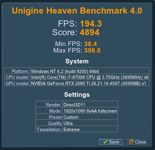 Core i7 8700k 4800MHz, RTX 2080 Ti