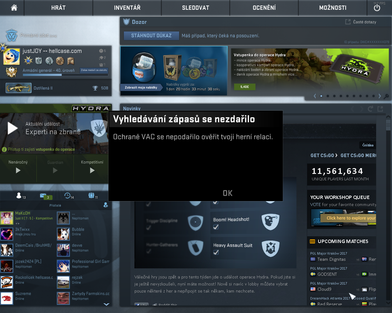 Dobrý den, dne 1.7 jsem normálně hrál csgo deatmatch.... potom jsem odpoledne odjel do Budějovic a večer už jsem nehrál. Druhý den ráno zapnu csgo a uvidím toto hledal jsem různá videa čekal jsem asi den a nic poradtěmi jestli mam čekat dál napsat na steam support a co dál děkuji za odpověd