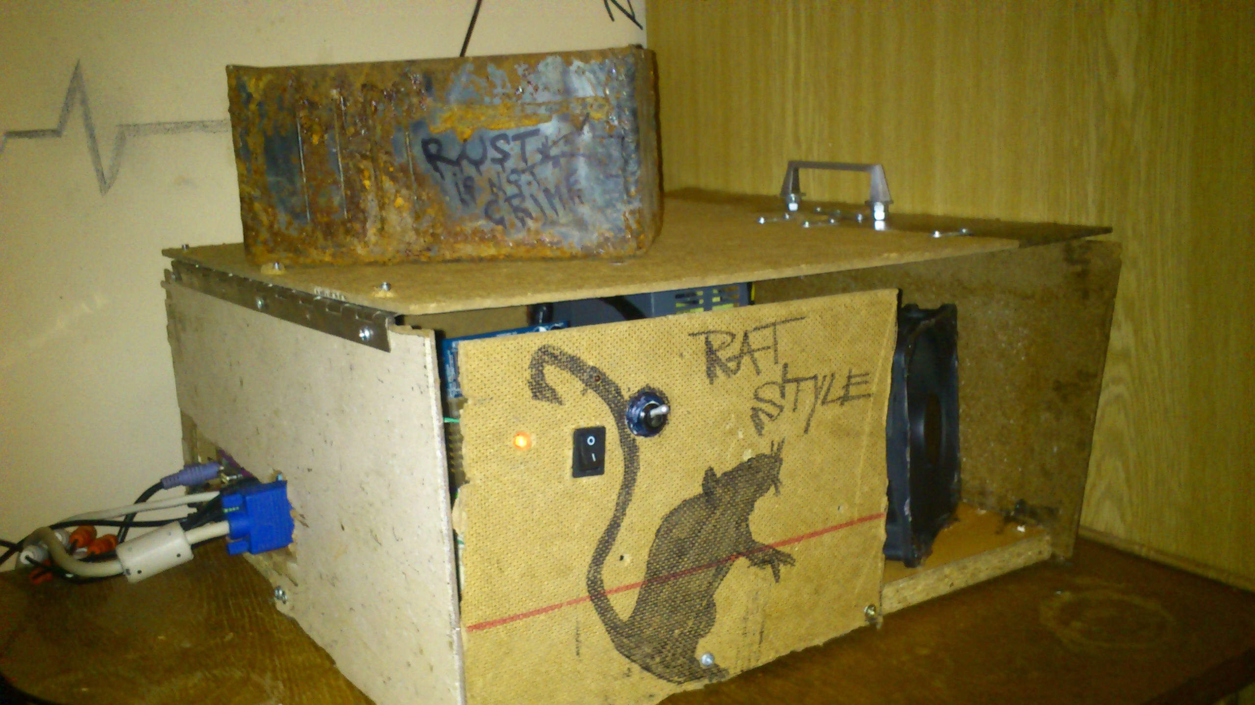 Tak to si viděl málo. Tady je aspoň nějakej náznak uspořádání, kabely protahaný za deskou, atd.. Šlo by to ještě hůř, jestli chceš vidět něco hroznýho tak já ti sem hodim obrázek mýho záložního PC na kterým zrovna jedu