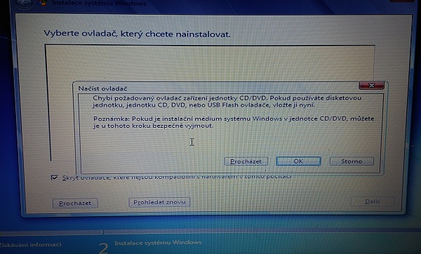 Pokud instaluji z flešky přímo z USB3.0, tak to po mě chce hned na začátku