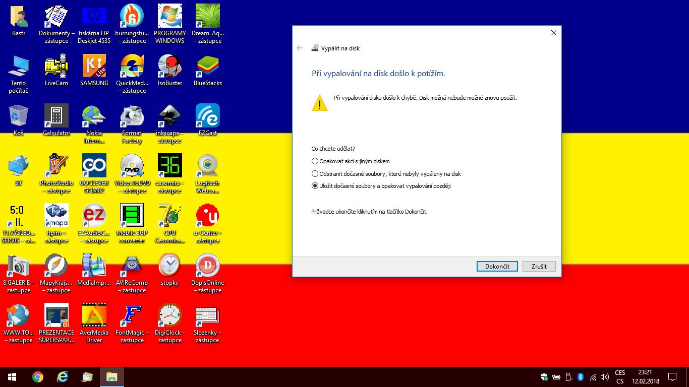 Mám notebook s Windows 10 a začalo mě chybovat vypalování CD/DVD jak na vestavěné vypalovačce, tak na externí USB!Zkoušel jsem dvě USB vypalovačky .Na všech se objeví zpráva " vypalování se nezdařilo" !Zkoušel jsem odinstalovat vypalovačky i ovladače a znovu vše nainstalovat, ale nepomohlo to!Data na disku jsou opravdu poškozená -načítají se hodně pomalu, pak jdou číst dobře! Evidentně je to v něčem společném pro všechny CD/DVD mechaniky! Čím to je a co se s tím dá dělat?