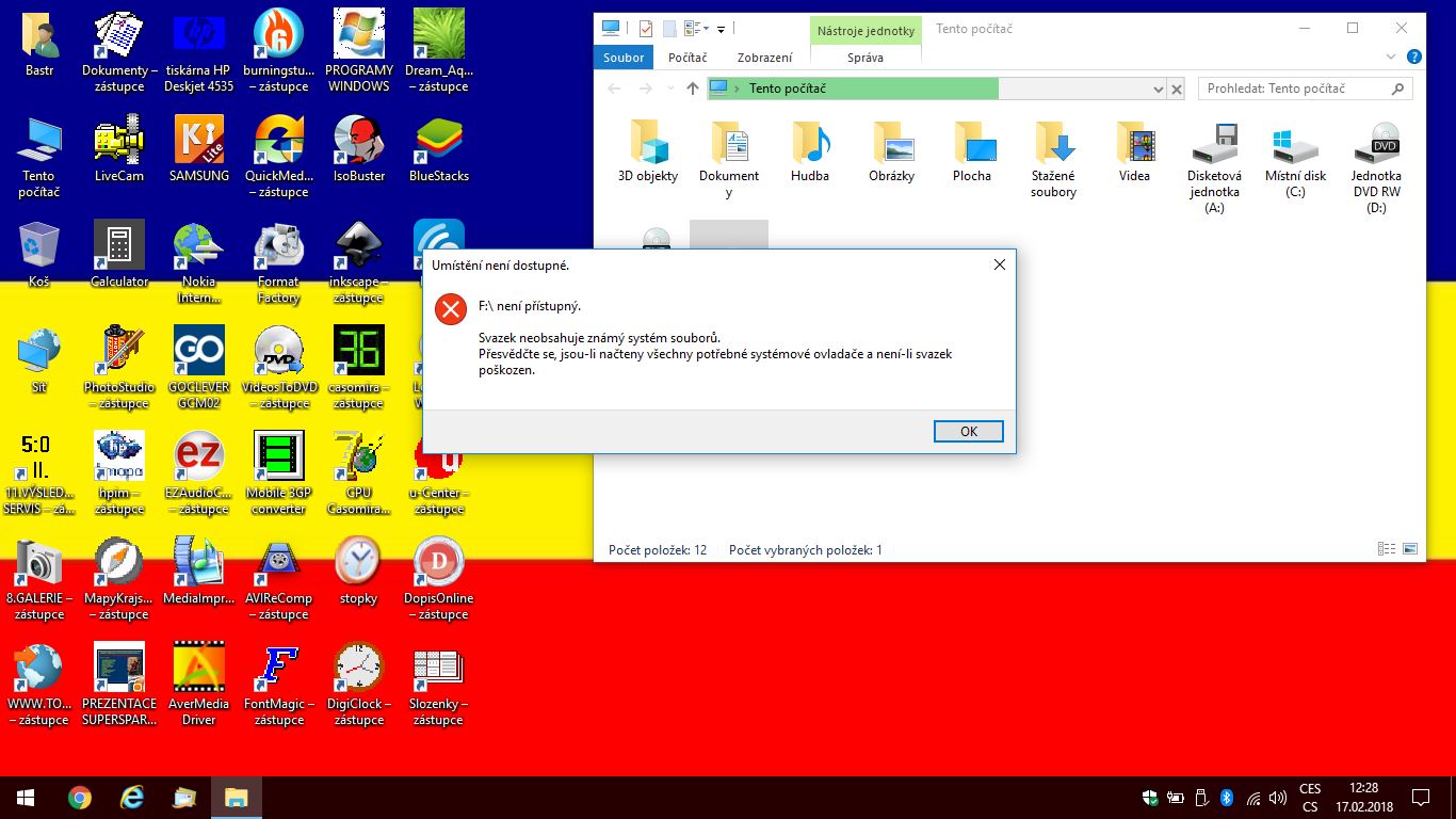 To jsem zkoušel! Navíc jsem přišel na to. že mi nejdou načíst hudební CD-R, některá datová CD i originální. Nejdou mi načíst i některé flash disky. Nejdou načíst media ve formátování FAT a FAT31 ,nejdou načíst klasická hudební CD, originální datová CD ,některá DVD a zřejmě ten samý problém dělá tu chybu v nahrávání. Stále nevím, jak to opravit.