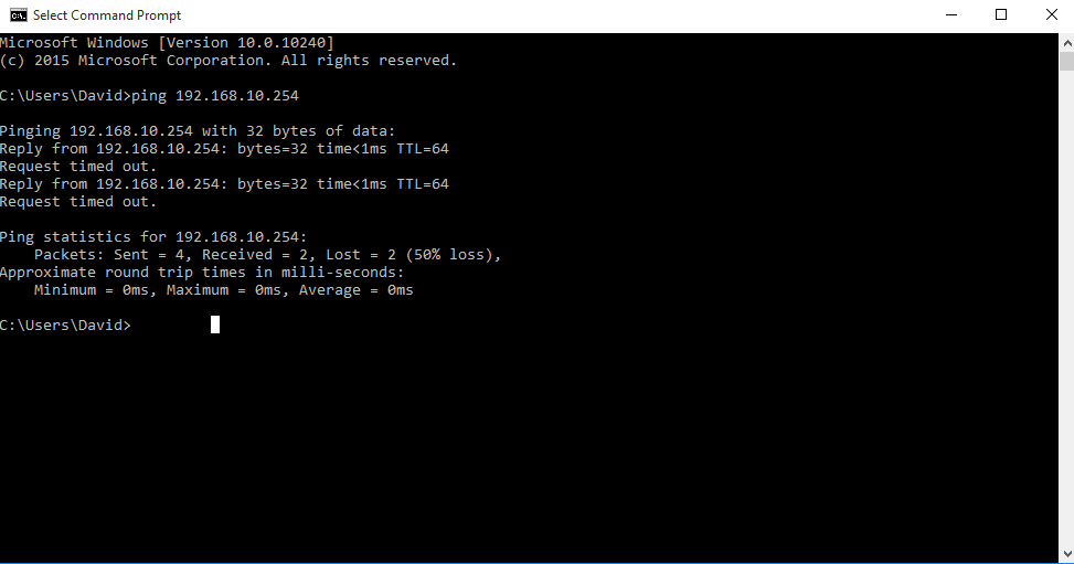 Ping má být na bránu, tedy ne na 192.168.1.1 - to jsi špatně četl text, ale ve tvém případě na 192.168.10.254.