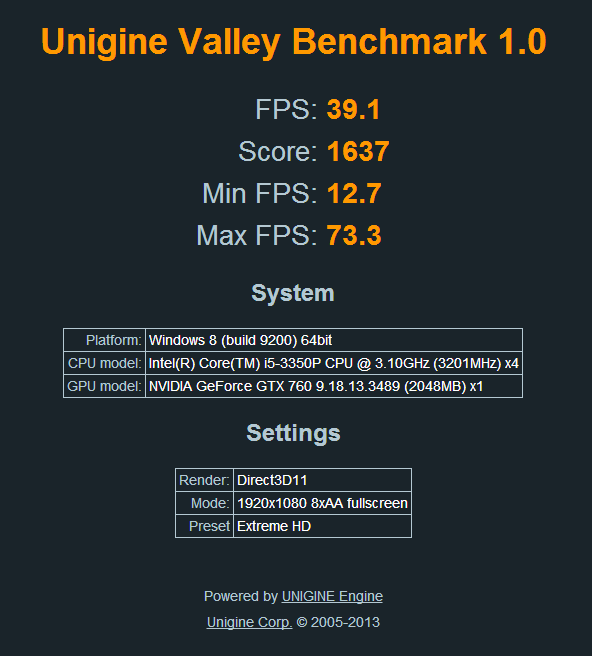 Re: Změřte výkon s ostatními v Unigine Valley 1.0
