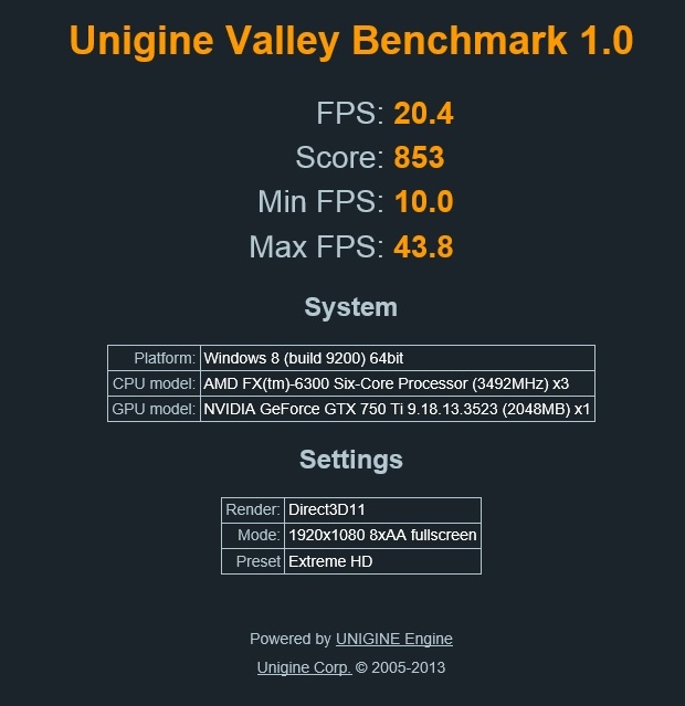 Re: Změřte výkon s ostatními v Unigine Valley 1.0