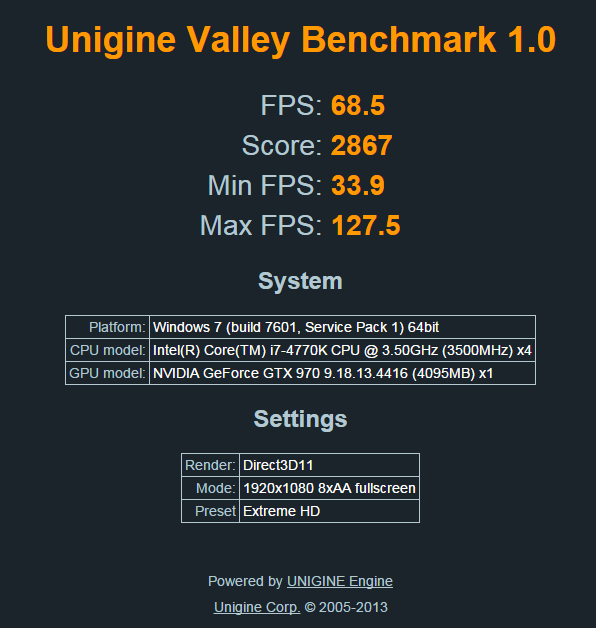 MSI GTX 970 Gaming (OC jádra na 1562 MHz) + i7 4770K (OC na 4GHz)