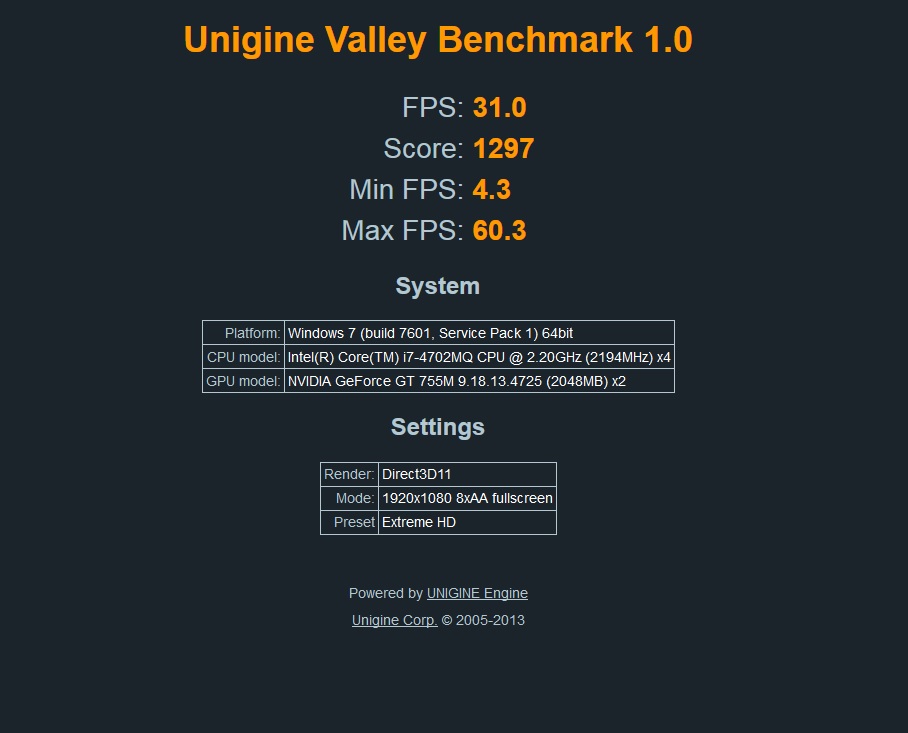 Re: Změřte výkon s ostatními v Unigine Valley 1.0
