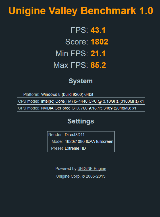 Re: Změřte výkon s ostatními v Unigine Valley 1.0