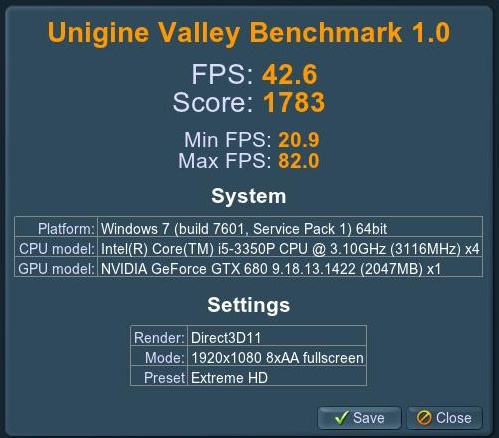 Zde je můj výsledek s GTX 680 Lightning na základních frekvencích od výrobce....nastavení Extreme HD