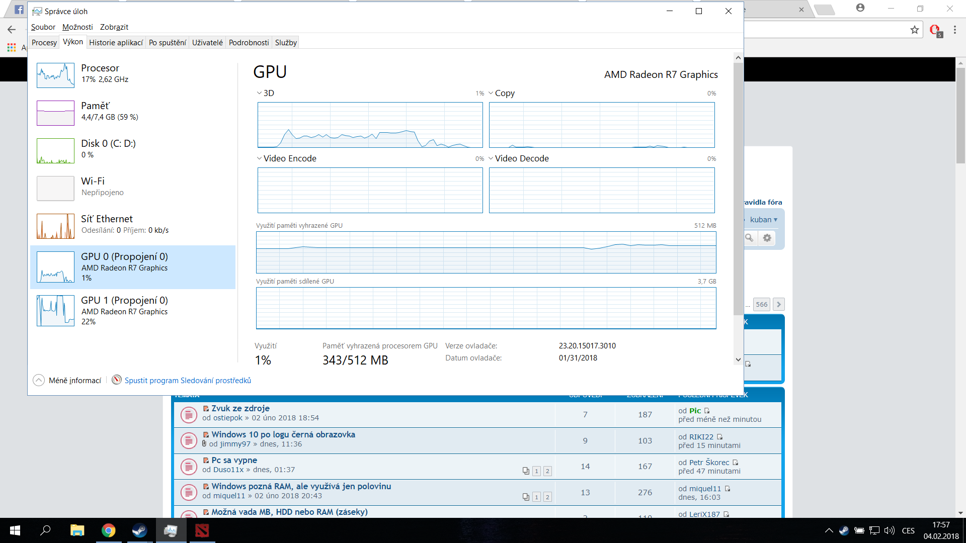 Dobrý večer chtěl jsem poprosit o radu.. přišel jsem na to, že mi nejspíše ntb jede ve hrách na integr. grafice a asi se to nejspíš nepřepíná, přitom mám nastavené hry na vysoký výkon v AMD settings.. jedna je integrovaná 512 a druhá 2gb.. ..díval jsem se totiž do správce úloh když jsem hrál a stále mi psalo jen AMD r7 , což je integrovaná a vůbec si to nebere tu druhou viz. screen .. a stále zde píše jen 512 MB .... někdo nějakou radu prosím? Doložím popřípadě vše co bude nutné ..