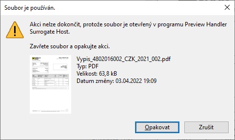 Vždy se objeví hláška: Soubor je otevřen v programu: