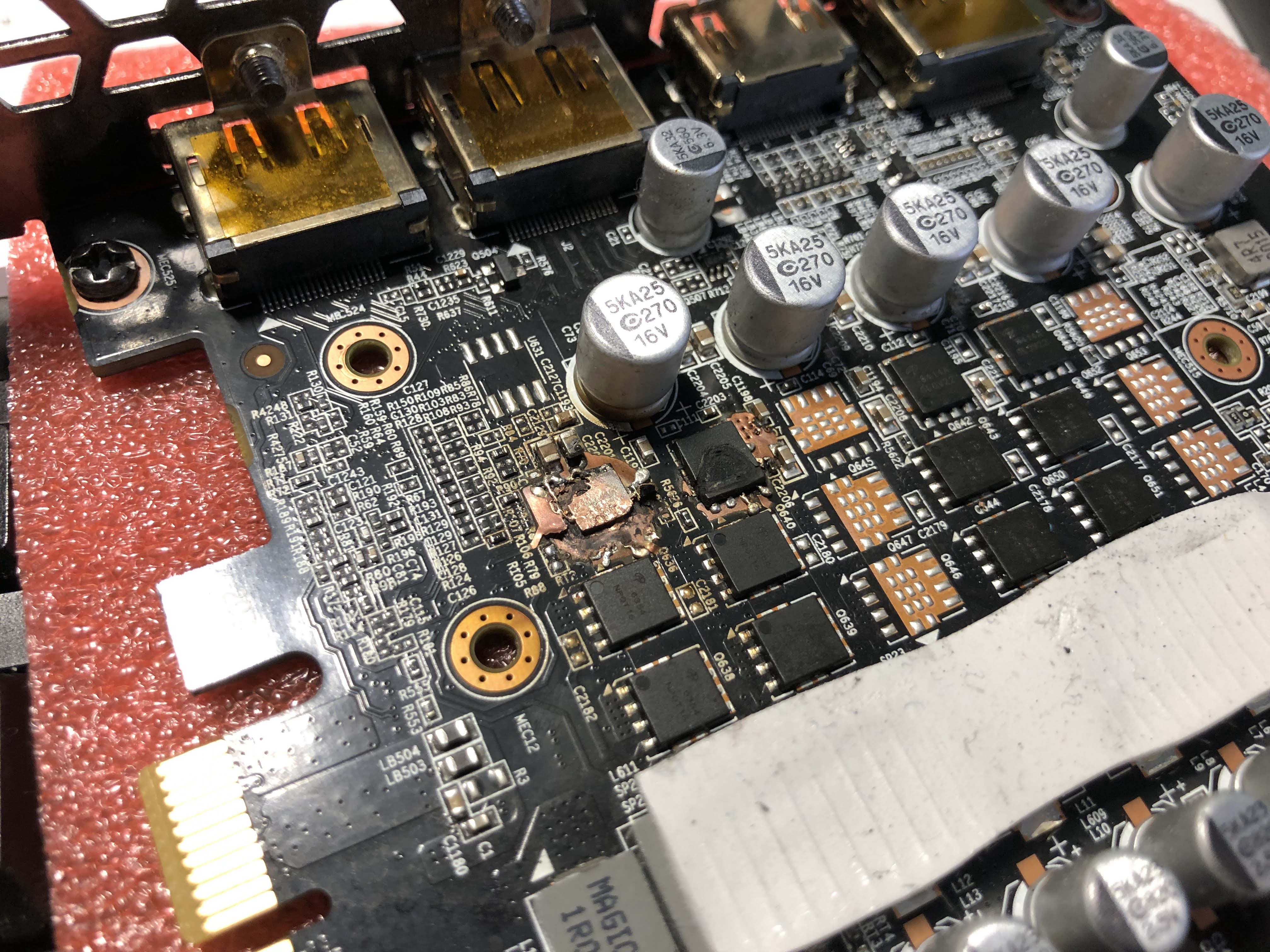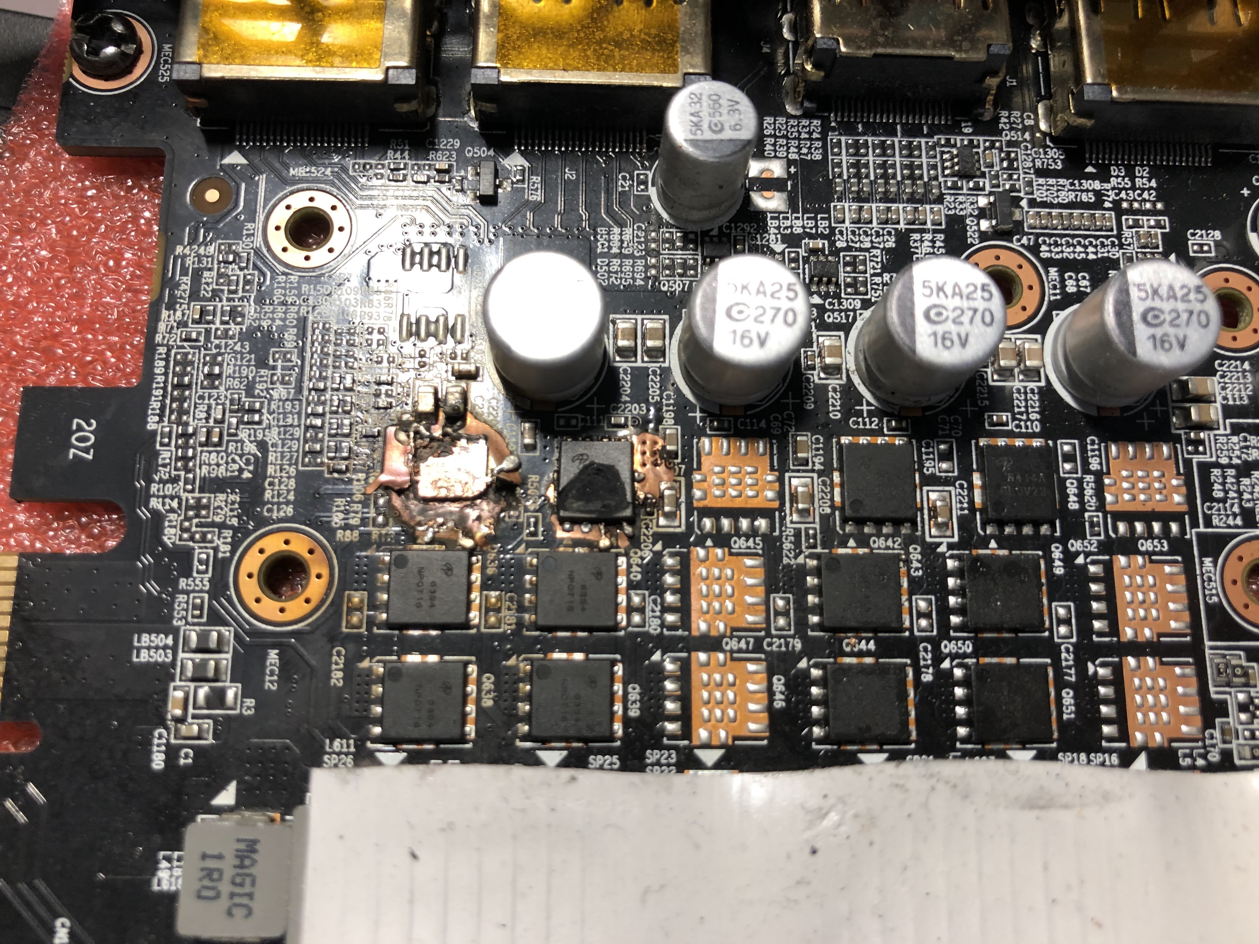 Tak to bylo v Polsku u Gigabyte. Posílám reklamační protokol a fotky PCB - MOSFET je úplně odpálený a asi s sebou vzal i kus desky, a pak je otázka, zda to šlehlo až někam do čipu :/ Teď jsem ale dostal možná podstatnou část informace, že měli v domě pochybné rozvody, jiskřící zásuvky... takže to by...