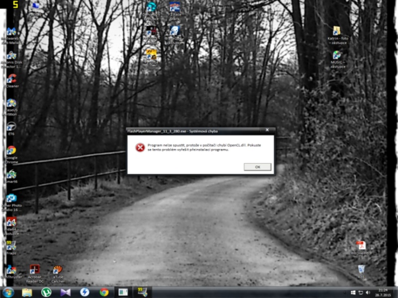 při spuštení windowsu mi naběhne hláška ohledně Flashplayermanager,že chybí OpenCl.dll, někde jsem četl že to může být grafickou kartou no ani opětovná instalace ovladače nic nezměnila. Prosím o pomoc