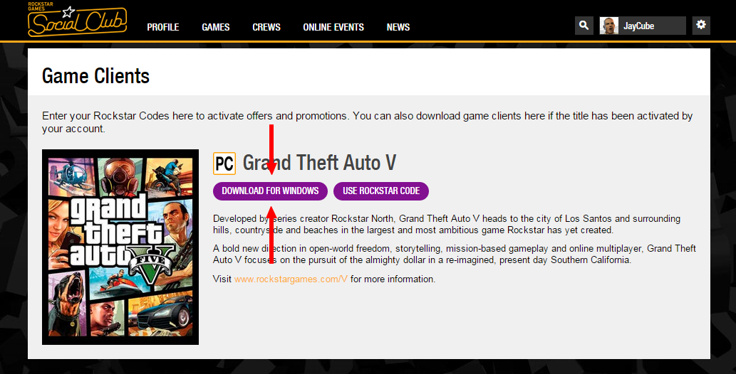 Nikam nic zadávat nemusíš. Mě to normálně nabízí soubor ke stažení. Pokud jsi přihlášený a máš na tom účtě aktivované GTA V, tak by se ti mělo na tom odkazu ukázat něco takového: