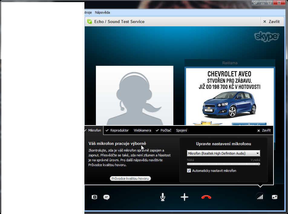 Takže nejde mi jenom mikrofon,zvuk mi už de (na skypu).