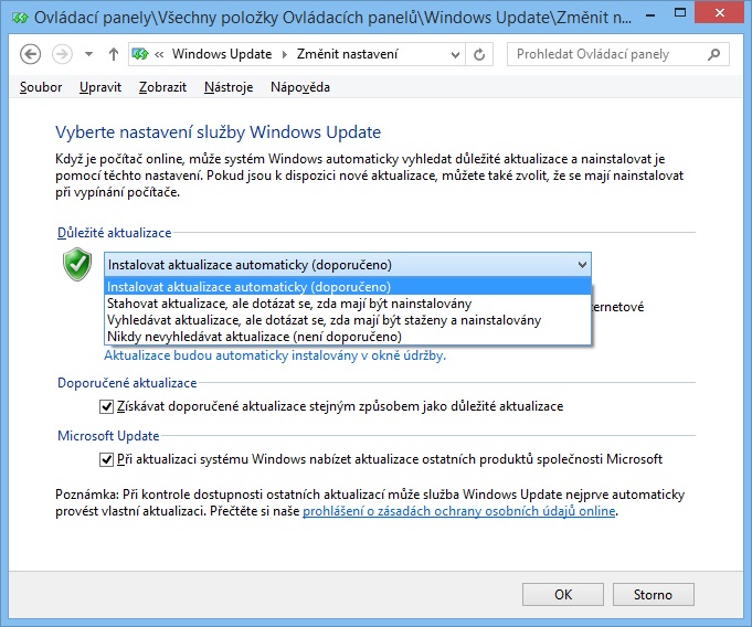 Re: Windows 8 vypnutí aktualizací Vyřešeno