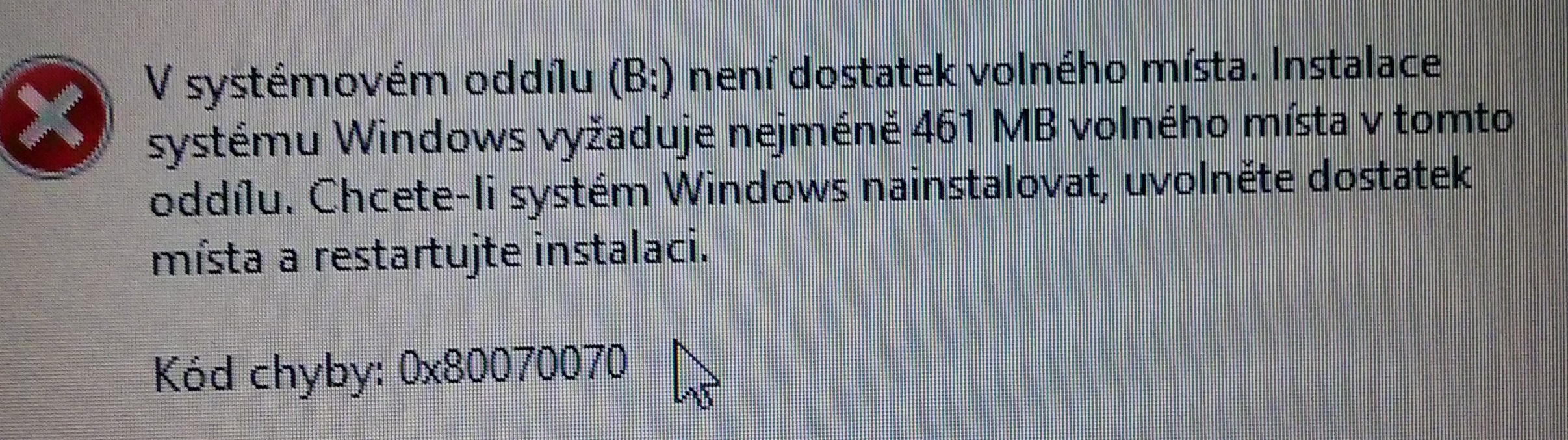 ok ale já se ani nedostanu do vybírání oddílů prostě si zvolím jazyk a kliknu na instalovat potom to vyhodí tu chybu co už jsem tu dal :/