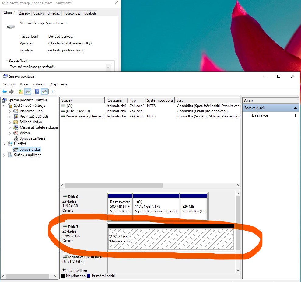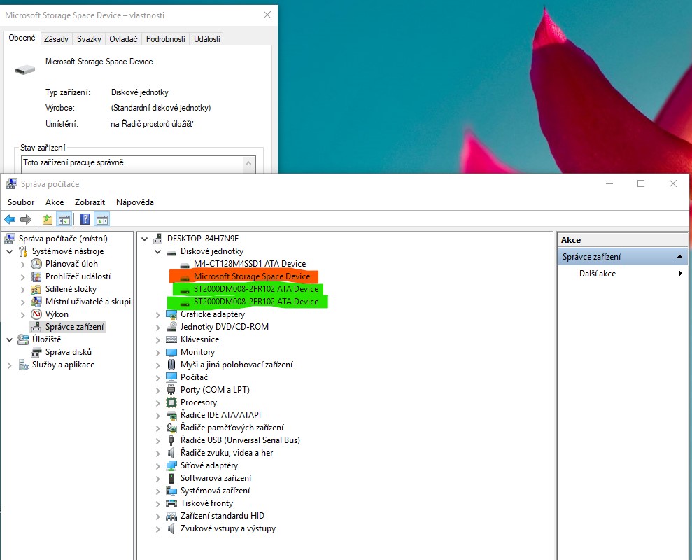 RIKI22 - Odinstalací bych si nerad vyrobil další potencionální problém. Nemám tušení co vlastně je za zařízení "Microsoft Storage Space Device" To si asi nechám jako poslední možnost. Petr22 - Nic z toho jsem dnes vědomě neinstaloval - pouze jsem zkusil průvodce vytvoření jednoduchého svaz...