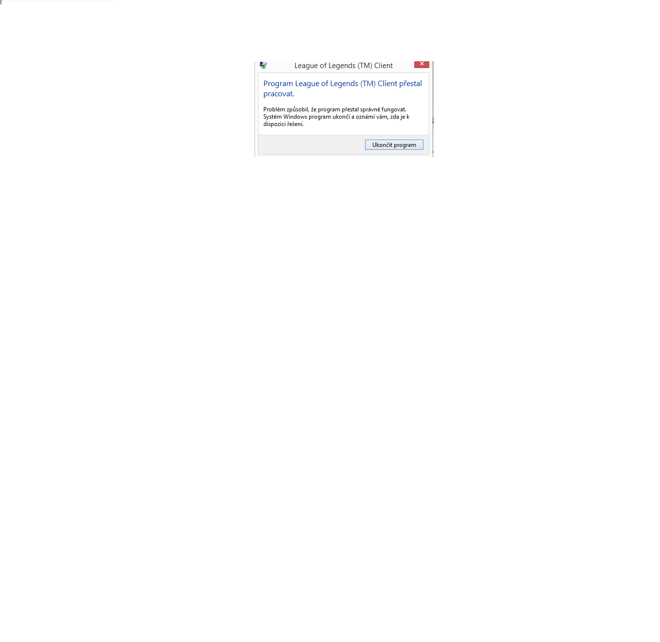 Dobrý den mám problém se hrou League of Legends. Docházi mi k pádu hry a píše to LoL client přestal pracovat více sreenshot. Prosím o pomoc jestli někdo neví co s tim.