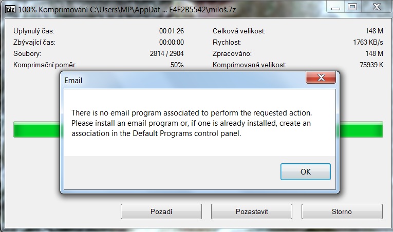 WinRAR 5.01 Tohoto not'asu se budu zbavovat, tady už nic řešit nepotřebuju. Zkomprimuju a naskočí mi okénko, at' nainstaluju email program nebo ho připojím.