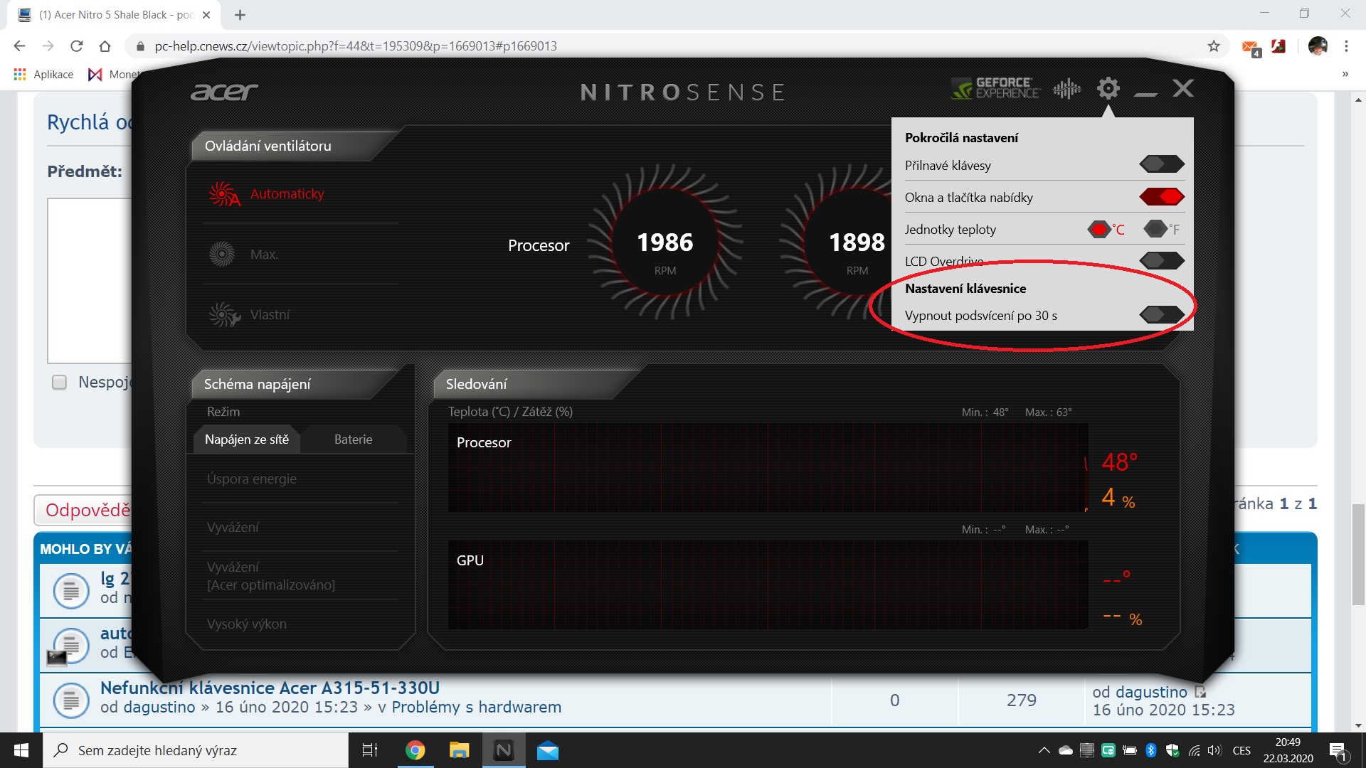 Re: Acer Nitro 5 Shale Black - podsvícení klávesnice se vypíná