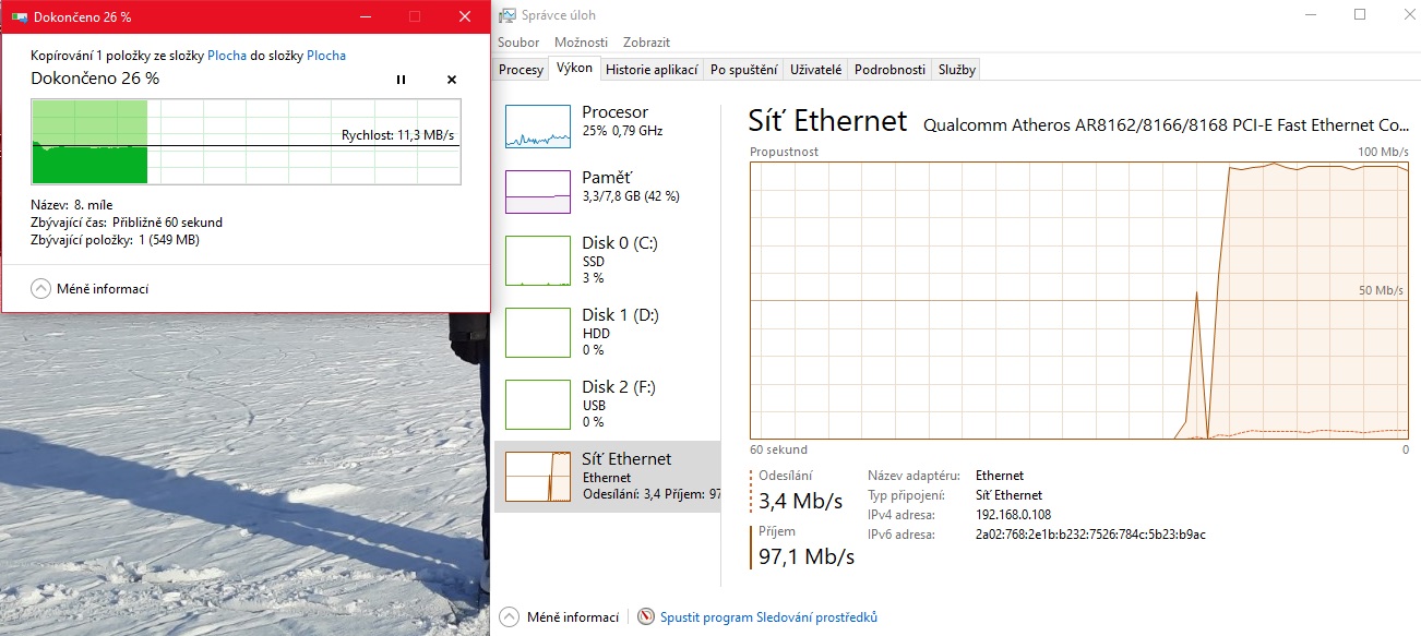 Promiň, ale na jednom mi to teď ukazuje 289 Mbps a na Lenovu 14 Mbps Dodatečně přidáno po 6 minutách 31 vteřinách: Proč? Protože jen blbci musím vše zdůvodňovat 2x až třikrát. Kde je plánek sítě??? Nicméně - předpokládám, že je tedy vnitřně vše v pořádku. Tedy: - odpoj všechna zařízení od sítě s výj...