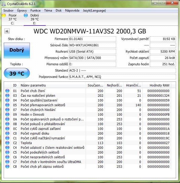 Toto ukazuje správa disků (snad jsem to dobře vyfotil, jiné info jsem tam nenašel) správa disků.jpg --- Doplnění předchozího příspěvku (Pon Lis 24, 2014 9:56 pm) --- CrystalDiskInfo na interním disku v ntb označil "Počet přemapovaných sektorů"... Nevím, co to přesně znamená, ale asi to na ...