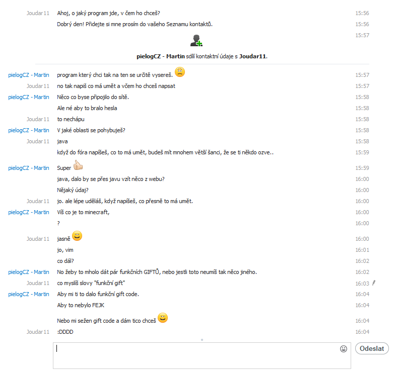 Program mi pošlete pomocí Skype, a já se podívám jestli je to dobré a funkční a nejvyšší nabídku jsem si řekl že dám 500Kč, protože to je jen sice program.