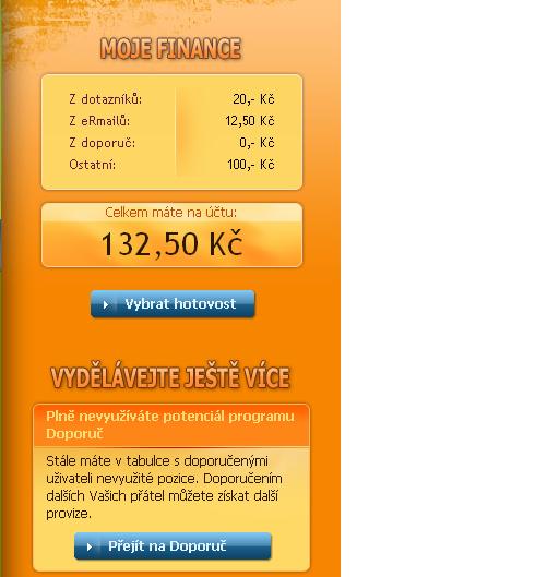 No tak jsem se zaregistroval... A ta stovka? No nikde není :-D Počkám jestli mi pošlou ty jejich reklamy a uvidím jestli budou nějaké peníze. Alespoň když přibude 1Kč :-D Rád zkoumám nové věci a toto jsem ještě nezkoušel, ale vydělávat tím určitě neplánuji :-D Vám tu stovku dali?