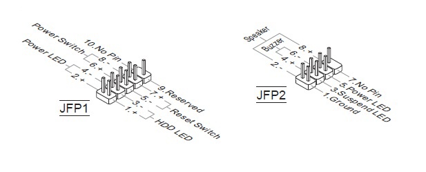 U konektorů Power (zapnutí počítače) a Reset (restart počítače) záměna polarity nevadí a fungují i tak.U konektorů HDD Led a Power Led značící činost disku a zapnutý počítač se po špatném zapojení diody nerozsvítí.Nicméně přehození jejich polarity je možné i za chodu počítače.