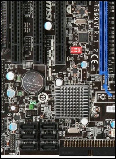 Před osazením grafiky odloupneme nebo odmontujeme jednu nebo dvě záslepky (podle velikosti grafiky) ze zadku skříně naproti PCI expres slotu.Ten je zobrazen na obrázku níže.Obvykle má jako jediný z PCI slotů zajišťovací páčku,aby grafika nevyjela ze slotu.
