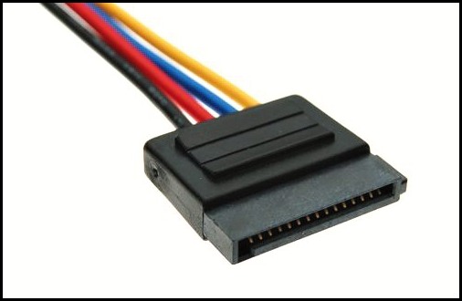 Zapojíme taky napájecí kabel od zdroje k mechanice a disku.Konektory těchto kebelů vypadají takhle: