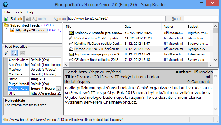 RSS čtečka SharpReader: kouzlo jednoduchosti