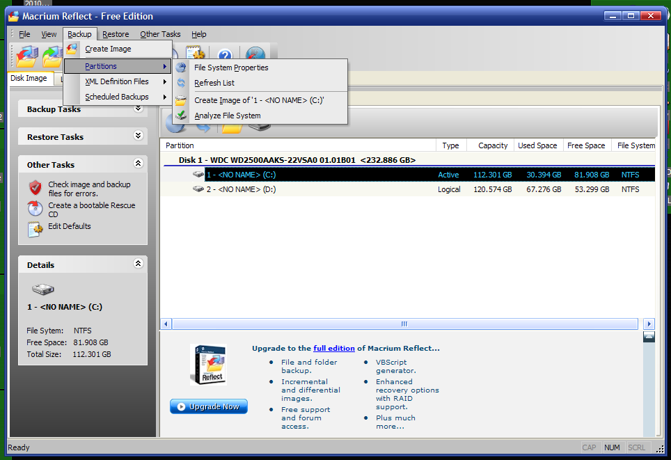 Macrium Reflect je utilta pro zálohování dat pomocí vytvoření obrazu celého pevného disku nebo vybraného diskového oddílu. Image je možno vytvořit na jiný pevný disk, síťový nebo externí USB disk, DVD nosič apod. Podporováno je i automatické zálohování dat v předem stanovený datum a čas: