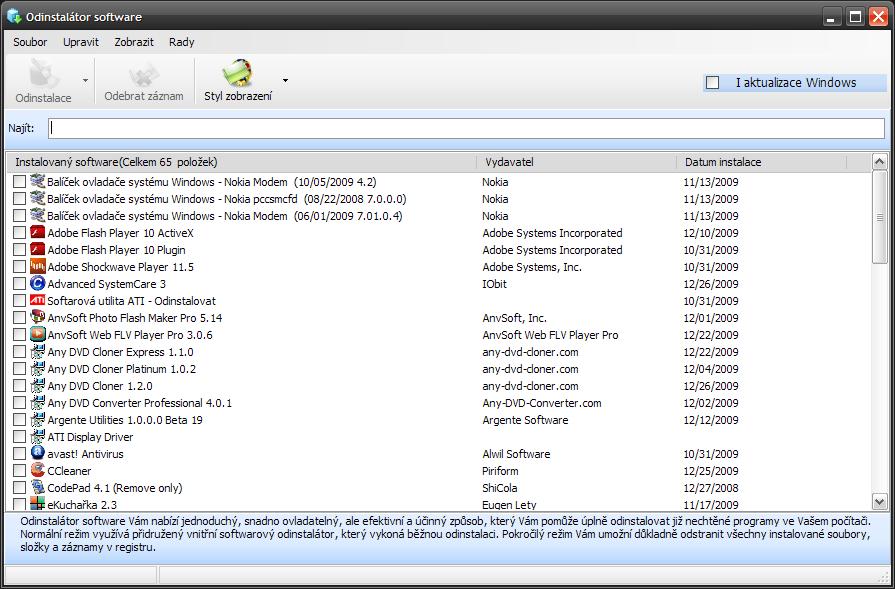 Do této verze přibyl odinstalátor programů s normálním a pokročilým režimem odinstalace (cosi podobné jako u REVO).