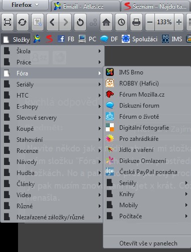 Tento doplněk přidá do Firefoxu vlastní lištu s nástroji, kterou si můžete zapnout / vypnout z menu: