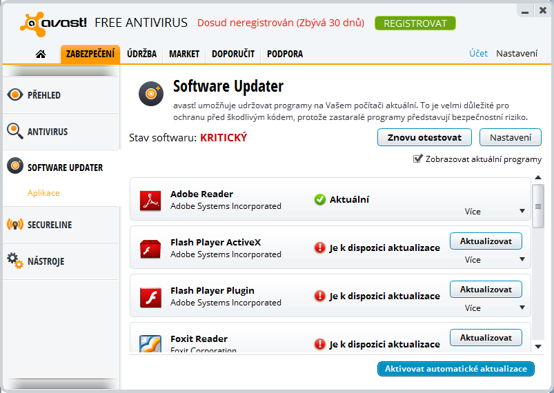 Nezmínit nelze nástroj kontrolující dostupnost aktualizací nainstalovaných programů, které patří mezi ty nejrozšířenější a proto i nejkritičtější. Právě aktualizace velmi často přinášejí opravu chyb, kterých zneužívají záškodnické programy. Podobných bezpečnostních prvků a zdánlivých, ovšem ve skutečnosti velmi důležitých drobností Avast Free Antivirus nabízí mnohem více, takže není divu, že jde o nejpoužívanější antivir na světě.