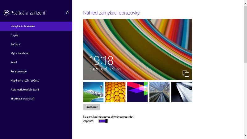 Stále však chybí možnost jednoduše vypnout zamykací obrazovku, která na počítačích bez dotykového displeje nemá valný smysl. Nově však může displej počítače proměnit v digitální fotorámeček, takže i bez podpory dotykového ovládání má alespoň nějaký smysl (byť diskutabilní). Její nastavení lze provést pouze z dotykového prostředí Metro, které ve Windows 8.1 získalo mnohem bohatší možnosti konfigurace systému.