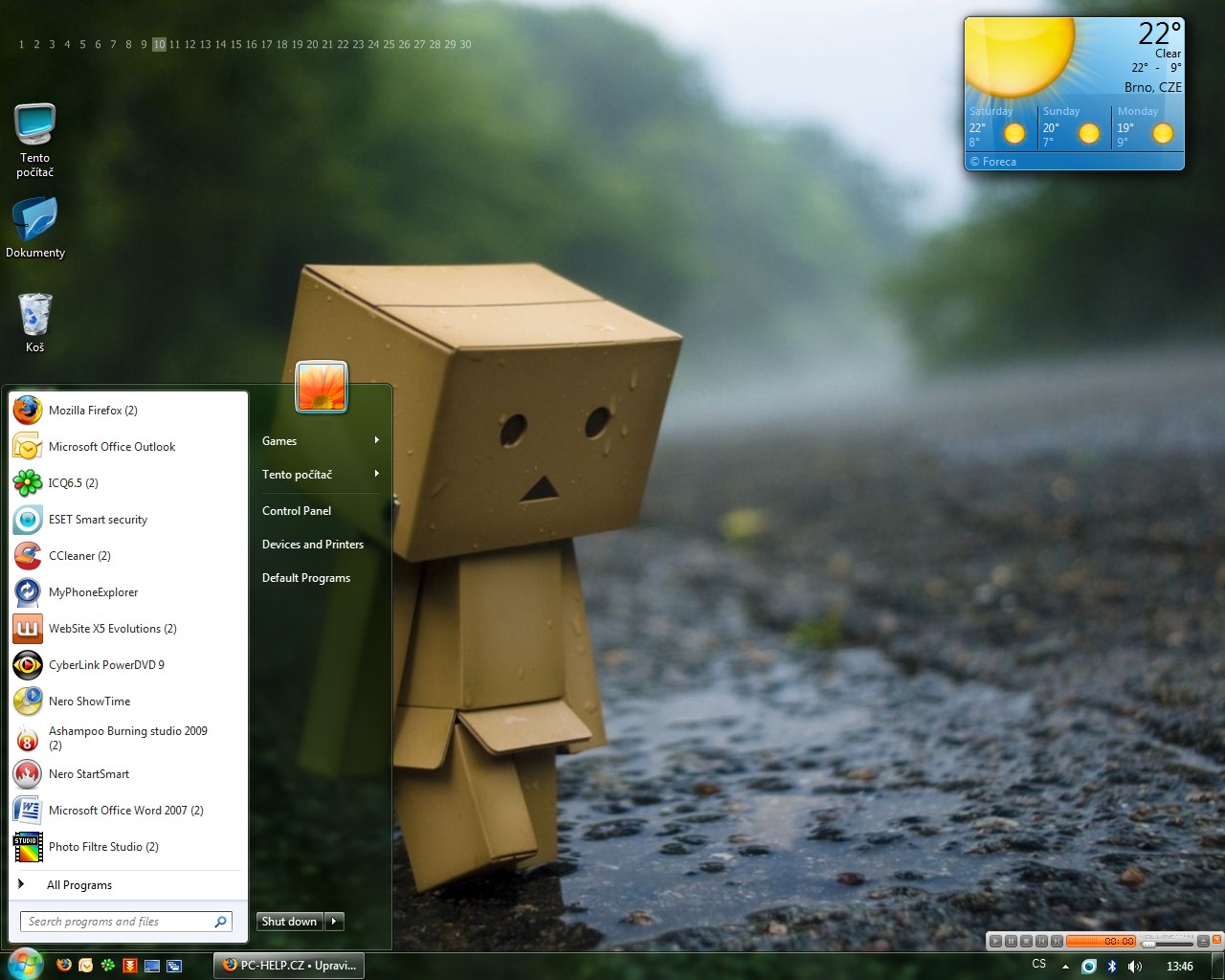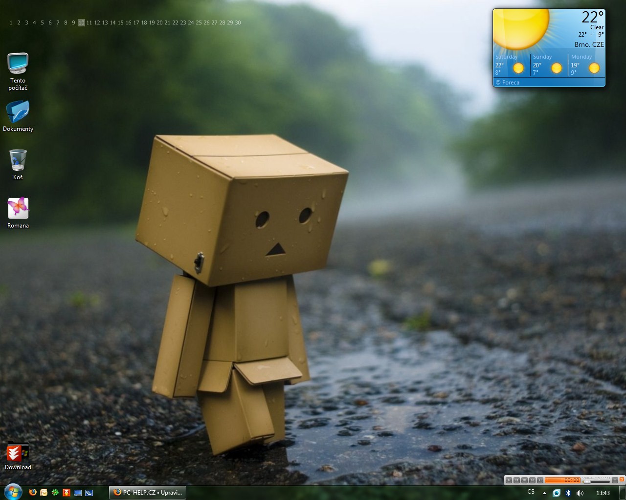 A ještě sem si přidala z jiné aplikace (Rainmeter) kalendář. K tomu všemu i vypnutý UAC.