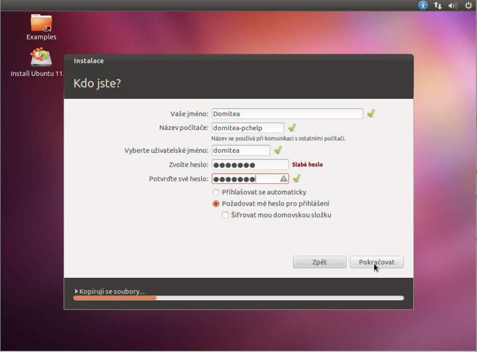 Zde už probíhá instalace systému, jen se provede jeho nastavení: času