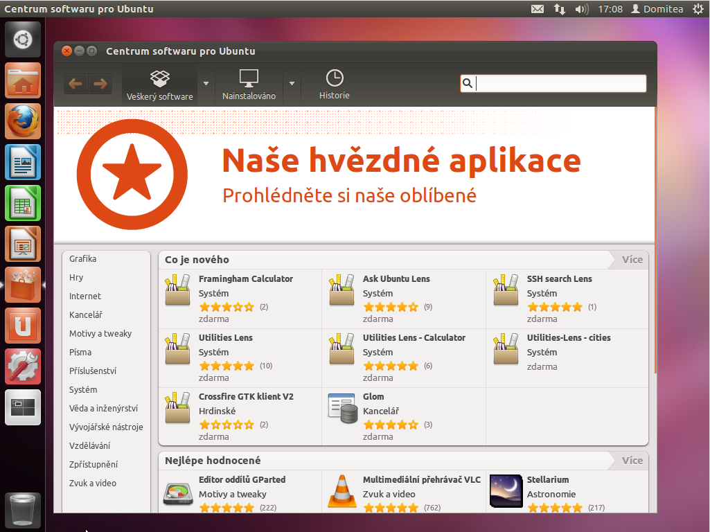 Ubuntu je systém svobodný, což znamená, že obsahuje v základu pouze svobodný software. Takže vás asi překvapí, že obsahuje Firefox, GIMP, Open/LibreOfiice a mnoho dalšího. Ovšem neobsahuje třeba Flash - slouží třeba na zobrazení videí na Youtube, podporu pro MP3. Takže tohle musíme zprovoznit - youtube, mp3 a další "potřebné" věci :wink: