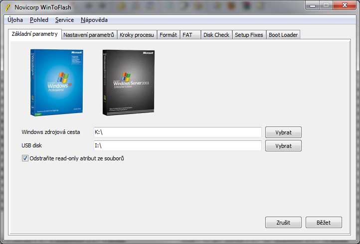Po stisknutí tl. "Běžet" nastavíme zdrojovou a cílovou cestu. Zdrojová cesta může být i iso soubor ve virtuální mechanice - např. pomocí daemon tools.