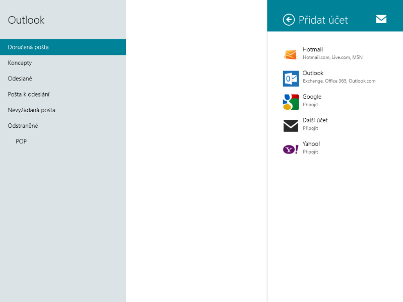 Mezi předinstalovanými aplikacemi pro Modern UI se též nachází velmi jednoduchý e-mailový klient Pošta (Mail). Spolupracuje s libovolnou e-mailovou službou, která poskytuje přístup k poště přes protokoly POP3 nebo IMAP, případně prostřednictvím technologie ActiveSync. Uživatelé e-mailových služeb Hotmail.com, Outlook.com, Gmail.com a Yahoo Mail mohou zadat jen své přihlašovací údaje bez nutnosti dalšího nastavování.