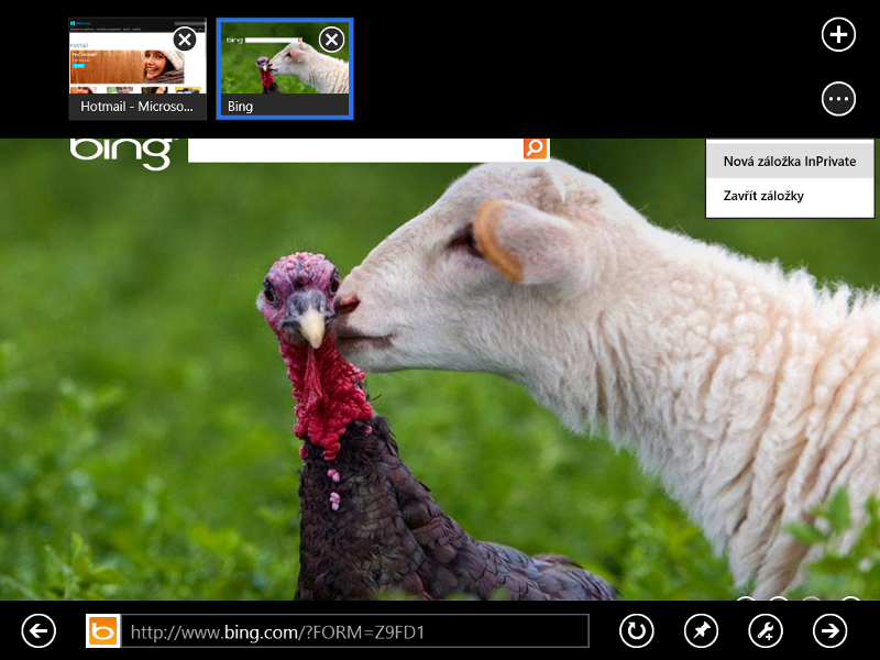 Jedinou pokročilejší funkcí je režim anonymního surfování InPrivate, který se aktivuje z horní lišty pro přepínání mezi panely. Po jeho zapnutí prohlížeč neukládá na pevný disk žádná data, podle kterých by bylo možné vystopovat uživatelskou aktivitu. To je prakticky jediná nadstandardní funkce, kterou si Internet Explorer přinesl z klasického prostředí do toho dotykového.