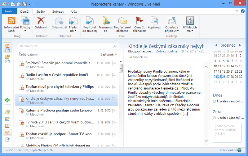 E-mailový klient s RSS čtečkou
