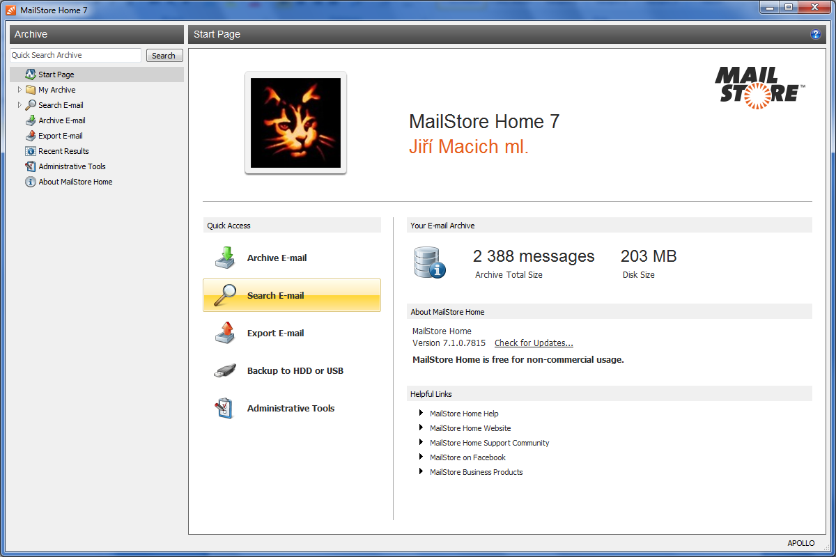 Zkrátka jde o velmi zajímavé řešení offline archivace pošty pro uživatele pracující s e-mailovou schránkou běžně jen přes webové rozhraní ve webovém prohlížeči. Zároveň však dovede i zálohovat poštu z nejrozšířenějších e-mailových klientů. Jeden drobný háček by tu ale byl: jak už název napovídá, program je zdarma poskytován jen pro nekomerční účely, tedy pro osobní užití. Firmám a živnostníkům tvůrci programu nabízejí portfolio zpoplatněných produktů.