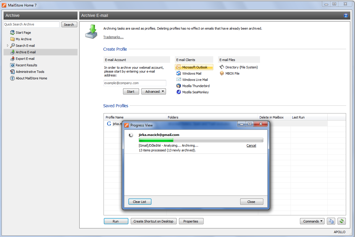 MailStore Home: zálohování e-mailů přímo z e-mailové schránky