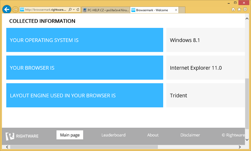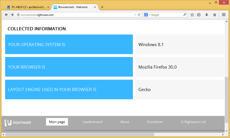 Aktuálně je situace taková, že z trojice prohlížečů, kterým se dlouhodobě věnujeme, si nejlépe vede Google Chrome (verze 35.0), jenž se může pochlubit 507 body. Na druhém místě je Mozilla Firefox (verze 30.0) se ziskem 467 bodů. Se značným odstupem následuje Internet Explorer (verze 11.0) dosahující relativně malého skóre ve výši 376 bodů.